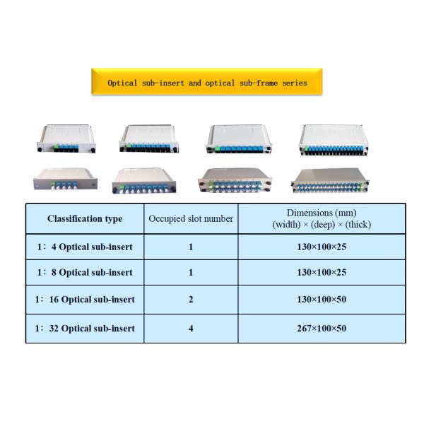 PLC splitter is based on a quartz substrate integrated waveguide optical power distribution device, has the advantages of small volume, the working wavelength range, high reliability, good light uniformity etc characteristic, is especially suitable for passive optical network ( EPON,BPON,GPON etc ) connected local and terminal equipment and realize the optical signal devide.